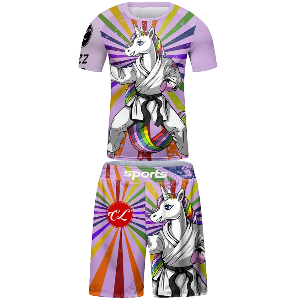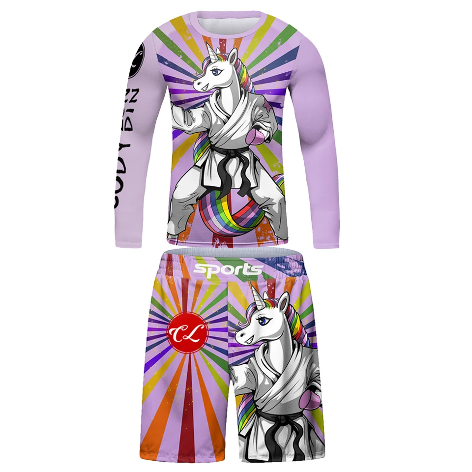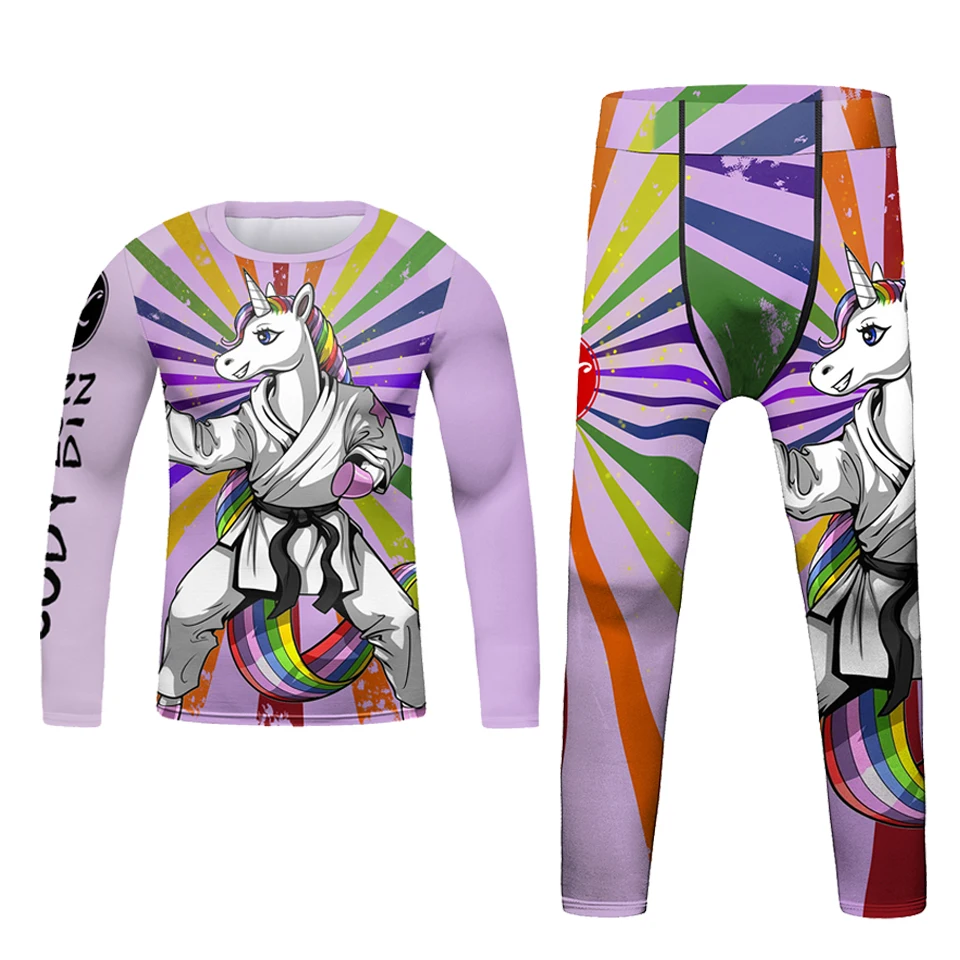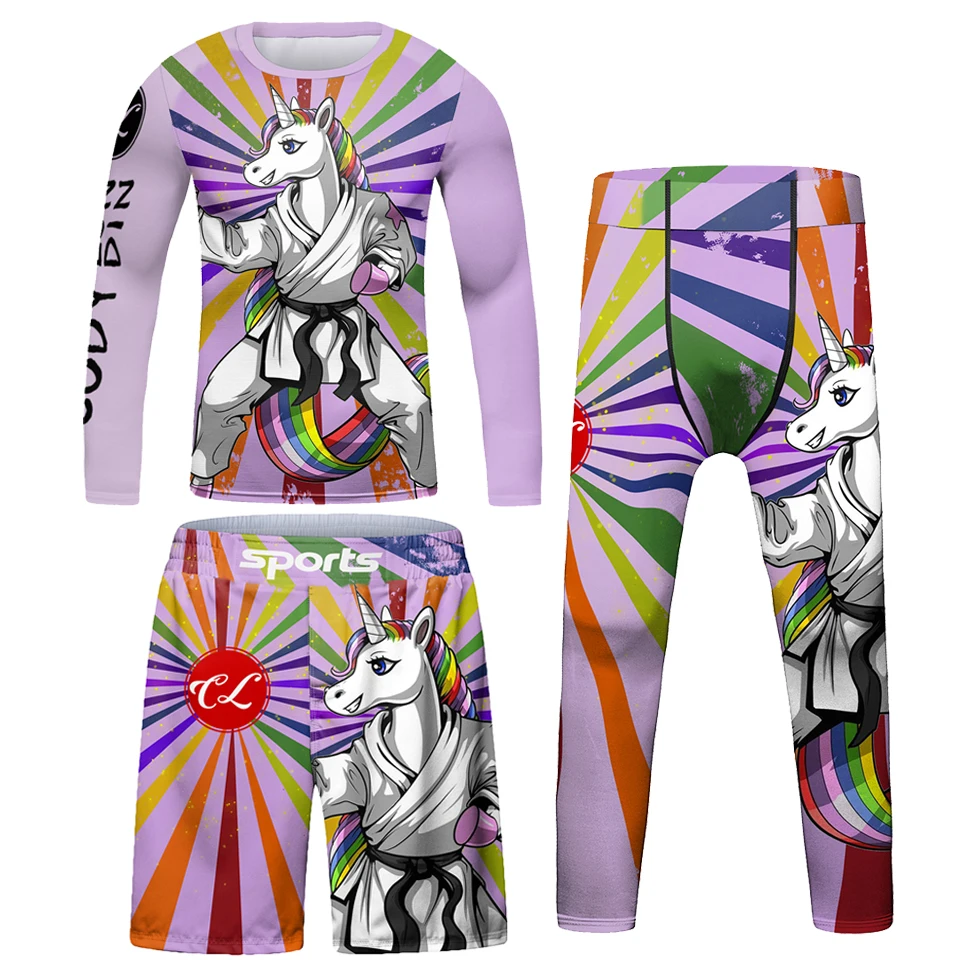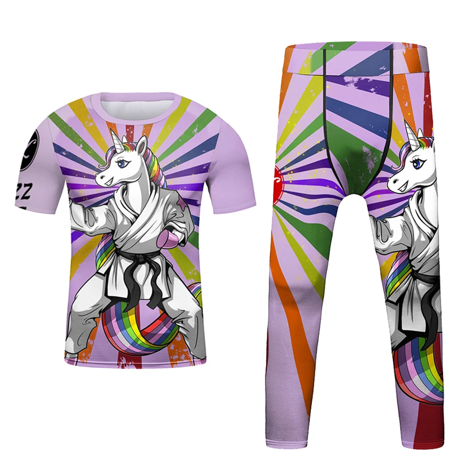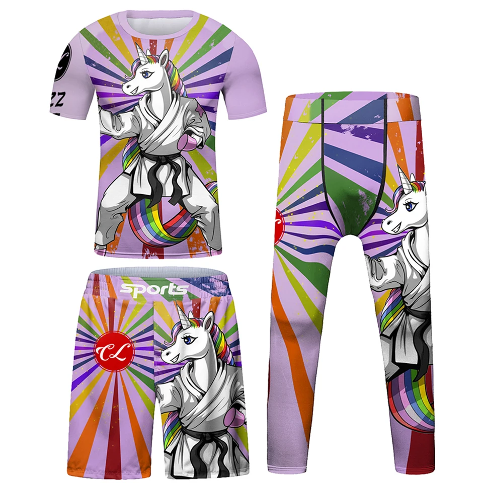 Kids Bjj Rashguard jiu jitsu MMA T-shirt+Pant KickBoxing Sets Boy Gym Children Muay Thai Shorts MMA Clothing Compression Tights
